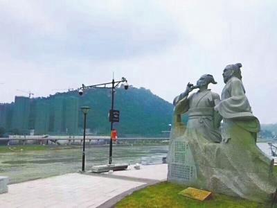 从昔日的照片可以看到,两位诗人的雕塑是宜宾滨江公园的一个景观,距离岷江江面有一定的距离。而随着近日岷江水位不断上涨,该雕塑逐渐被淹。