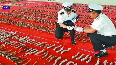 海关总署日前宣布,哈尔滨海关驻虎林办事处破获一起特大濒危动物制品走私案,案值1.06亿元人民币,创下全国海关近年来一次性查获走私濒危动物制品数量之最。