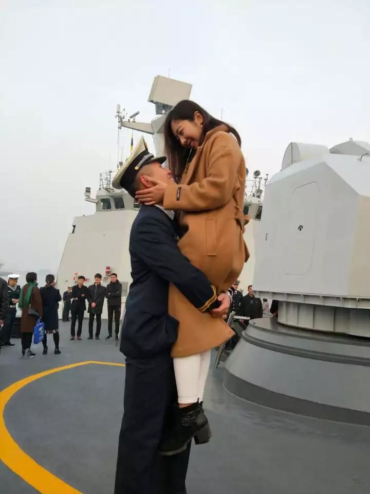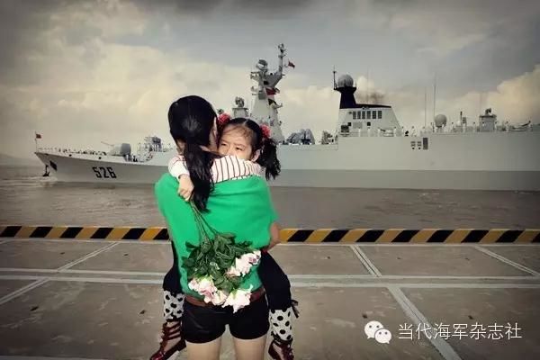 一名军嫂在远处的舰艇上看到自己的丈夫朝她挥手,兴奋地叫了起来。这是一种怎样的久别重逢,没有登上码头现场感受估计是难以想象的。