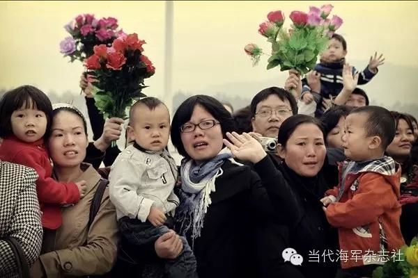 第七批护航编队启航仪式上送行的官兵家属。“你为国出征,我为你持家”,随后的大半年,这些军嫂将独自扛起家中所有的责任。