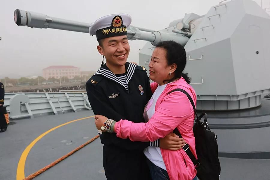 海军第二十九批护航编队赴亚丁湾、索马里海域接替第二十八批护航编队执行护航任务。甲板上打算和母亲合影的水兵,母亲的手始终不愿松开,眼里饱含温情。