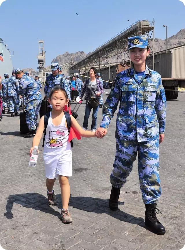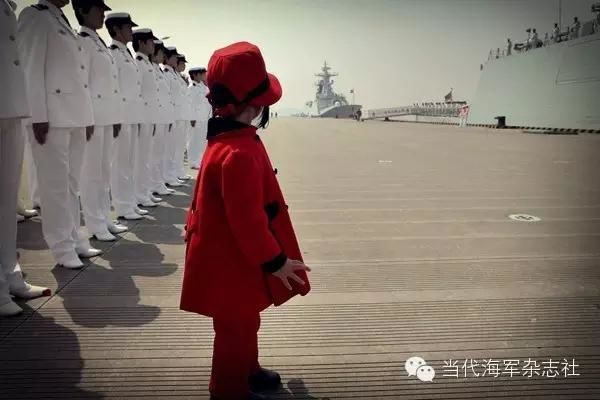 第四批护航编队返航仪式上,一名红衣女孩突然独自走出队伍,在远处舰艇上来回寻找着爸爸的身影。