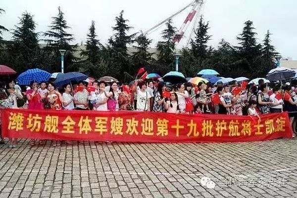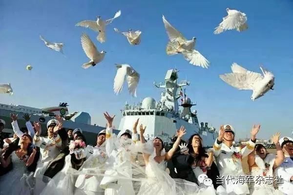 2014年12月1日,第十九批护航编队启航前,十八对新人在码头举行了隆重的集体婚礼;2015年7月9日,婚礼221天后,已经成为军嫂的新娘来到码头,迎接凯旋归来的丈夫。