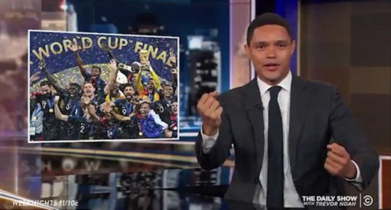 据英国《每日邮报》7月18日报道,近日,在刚刚结束的世界杯决赛中,法国队以4比2战胜克罗地亚队,捧走了大力神杯。但南非籍主持人特雷弗·诺亚(Trevor Noa)却在他的美国节目《每日秀》上表示,胜利属于非洲。
