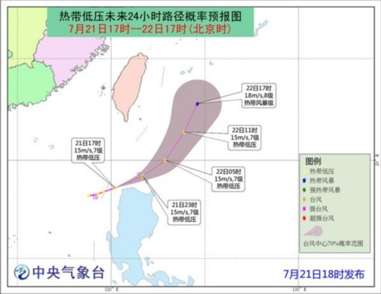 中央气象台7月21日18时继续发布台风黄色预警: