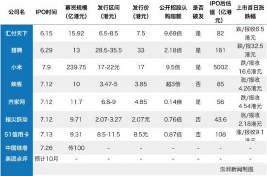 7月9日在港上市的小米,将发行价定于区间下限后,后续上市的几家公司都调低了发行价。