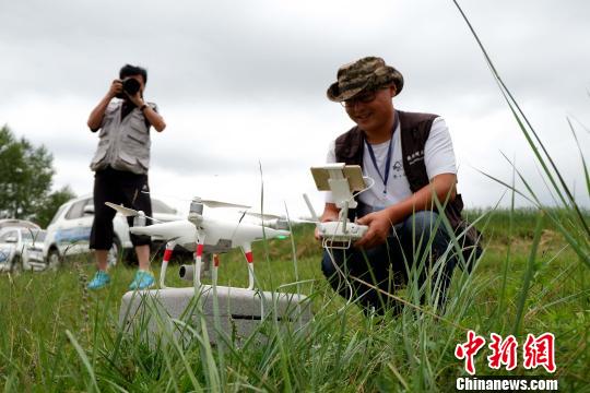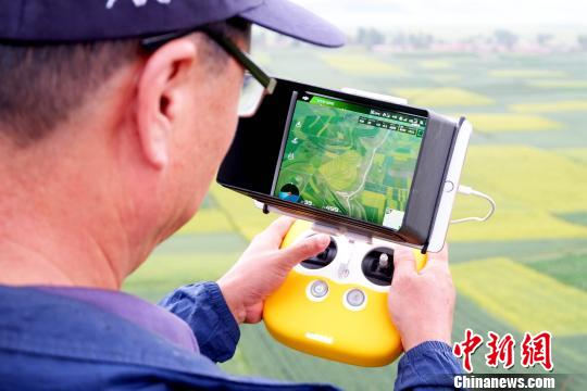 图为刘宽新正在进行无人机拍摄。 李隽 摄