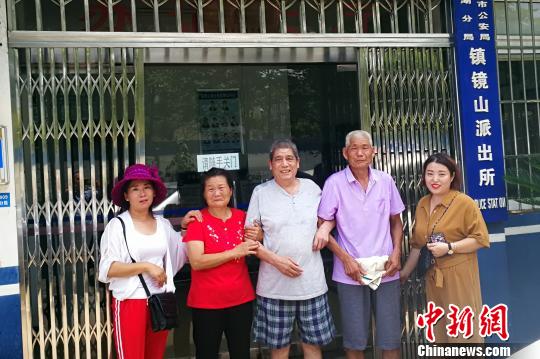 团聚的一家人在镇镜山派出所前合影 夏红兵 摄