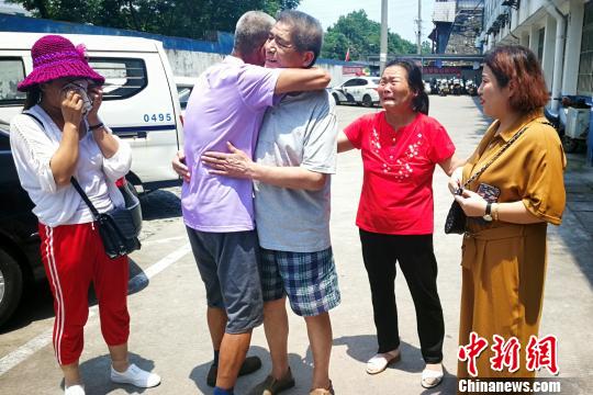 中新网宜昌7月23日电 (董晓斌 万姝婷)“非常感激民警的帮助,让我们一家人能再次团聚。”7月22日,在湖北宜昌市公安局平湖分局镇镜山派出所,将近70岁的曹爷爷跟失散60年的亲弟弟紧紧拥抱在一起。