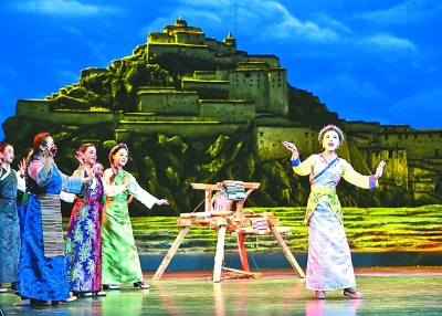 6月26日至27日,2018年全国基层院团戏曲会演参演剧目、由西藏自治区藏剧团编剧演出的改编传统藏戏《朗萨雯波》在北京中国评剧院上演。 新华社记者 李京摄