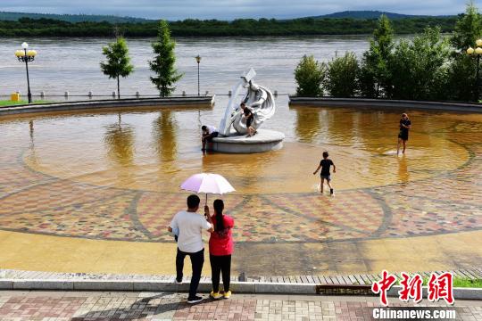 中俄界江黑龙江上游呼玛江段的洪水涌到江畔公园内周长平摄
