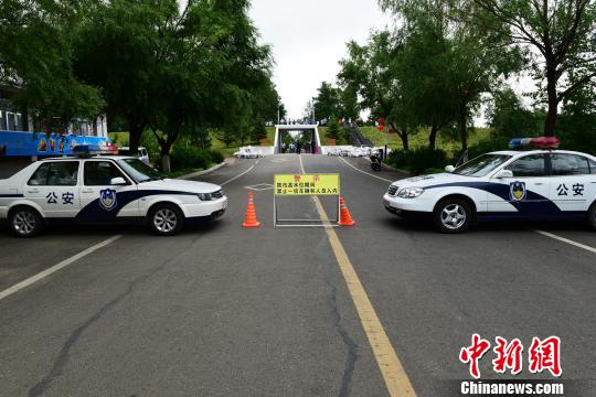 当地公安交警部门的警车封堵住了通往黑龙江边通道 周长平 摄