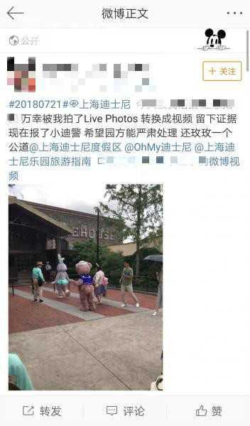 上海迪士尼希望游客在游园过程中遵守各项游客须知,并尊重其他游客和每一位演职人员。类似该名游客的不当行为不会被接受。同时感谢其他游客对演职人员表达的关心。