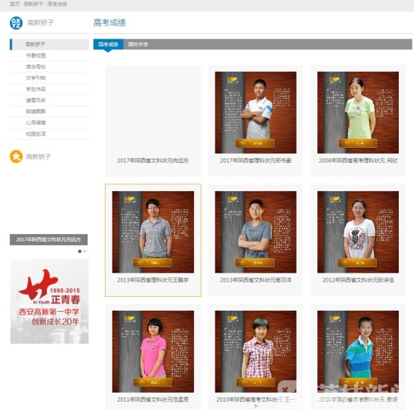 西安高新一中创办于1995年,是陕西省首批示范高中。作为一所民办中学,近年来该校高考成绩位居陕西省前列,据学校官网公布,2007到2017年,该校出了13名陕西高考状元。