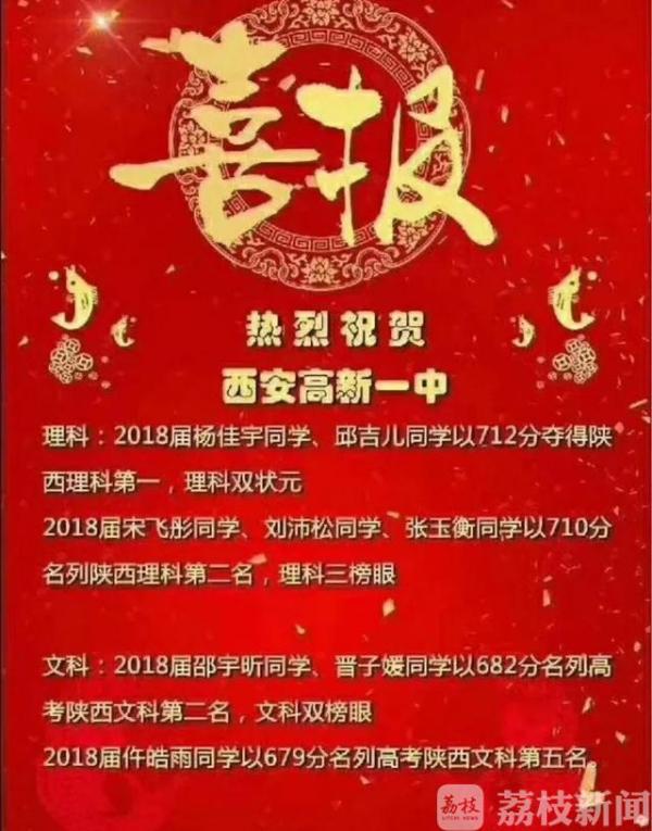 今年高考前,教育部明确要求,严禁宣传高考状元、高考升学率,一旦发现严肃处理。6月24日,陕西省教育厅下发通知,严禁宣传炒作“高考状元”“高考升学率”和“高考成绩排名”。然而高考成绩揭晓后,网上还是传出一份喜报,称西安高新一中两名学生并列陕西理科状元。