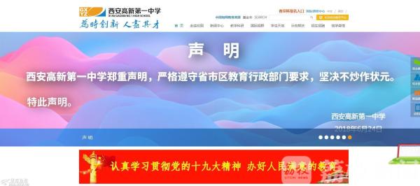 目前在该校官网上,2017年包揽文理科状元,78人考入清华北大的喜报,与2018年该校承诺坚决不炒作高考状元的声明,仍然在首页上轮流出现。