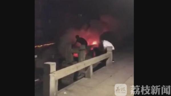 7月21日晚上,苏州市山塘街边的一艘游船发生火情。就在火势不断蔓延时,一位市民挺身而出,将大火扑灭。