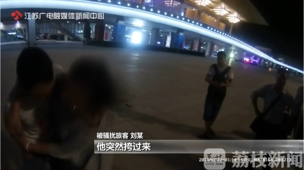 7月20日0点50分,南京南站派出所接到刘某报警,称有一男子在2楼售票厅从背后拉她,很像是要偷包里的东西。