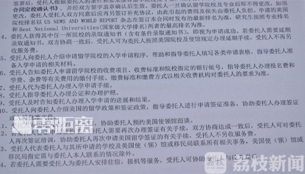 去年8月初,南京市民张先生的女儿决定高中毕业后到美国留学。为了帮助女儿顺利入学,张先生决定找家留学中介机构为女儿提供专业指导。跑遍了南京市面上的留学中介机构,经过多番比较,张先生最终敲定了其中一家。在这家留学中介机构任职的唐老师和纪老师,以专业、负责的态度赢取了张先生的信任,决定签约。在合同中,约定了这家留学中介机构提供培训、学校申请、签证等诸多服务,并且特别载明了全程必须由这两位老师中任一人作为张先生女儿的留学指导老师,否则可以全额退款。张先生如期支付了11.8万元的中介服务费后,他的女儿被安排进入到这家留学机构指定的一家培训学校上课。
