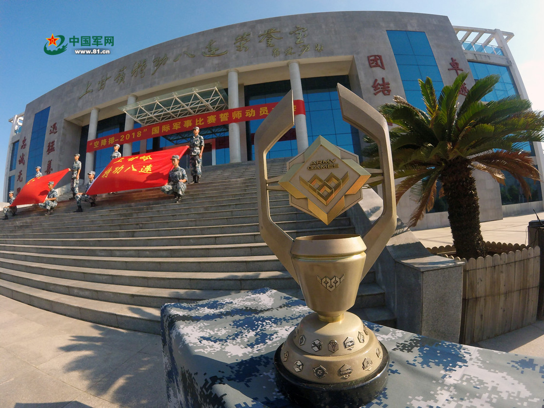 誓师大会现场,今年中国“空降排”参赛队要带着去年总排名第一的奖杯赴俄罗斯,将它还给赛事组委会,但是他们有信心将它再带回中国。方超 摄