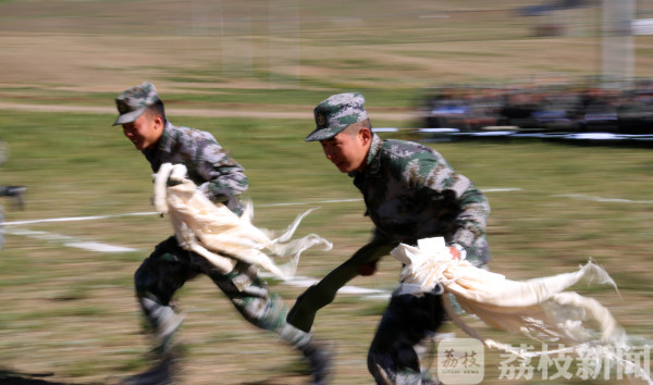 两名参考士兵正携带三角巾向伤员处跃进(欧阳作皓 摄)