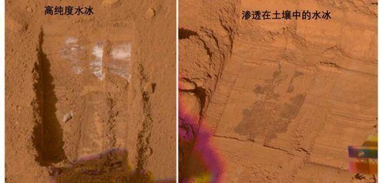 凤凰号挖到的两处水冰示例 | 参考文献[2]