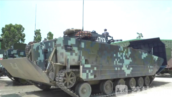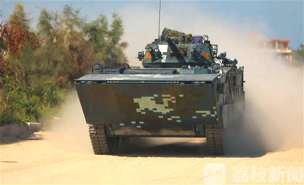 在这次比赛中,05式两栖装甲步兵战车是中国海军陆战队的主战装备,在第三阶段的接力赛中,各参赛队队员要驾驶它在长约8公里的赛道上接力完成障碍地段驾驶、车载火炮和机枪射击等竞赛内容,考验着各参赛队的单兵技战术水平和整体作战能力。
