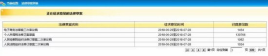 图为截至28日16时左右,中国人大网法律草案征求意见管理系统显示的《个人所得税法修正案(草案)》征求意见情况。