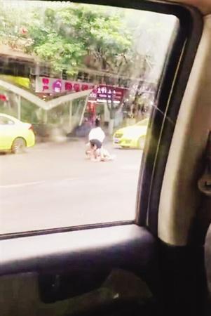 的哥穿越车流去扶起