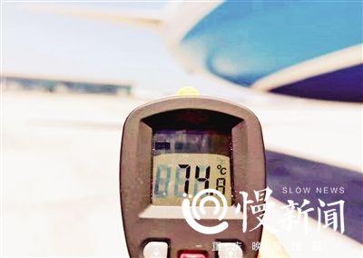 ▲烈日下,机场停机坪的气温达到了令人恐怖的74℃。