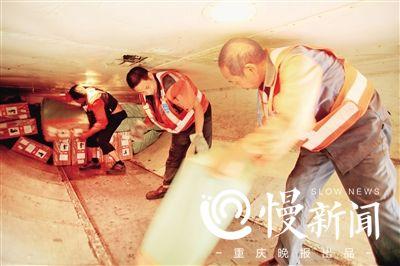 杨武勇的个头不算高,皮肤黝黑,几趟货物搬运下来,已汗如雨下。看着杨武勇头上的汗,慢新闻-重庆晚报记者(慢新闻爆料热线:966988;邮箱:3159339320@qq.com">)劝他休息,“这不算啥,我们都习惯了。”杨师傅摇摇头继续搬运,“这是要准时出发的飞机,把行李装卸完我们只能提前决不能延后。”说完,他头也不抬继续搬运行李去了。