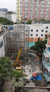 记者了解到,兰先生所住的小区和幼儿园只隔一堵墙。今年5月1日,幼儿园把周围的树木砍掉,开始打地基等方面的建设。“园方一直跟我们说是改建游泳池,结果6月时,我们才发现搭的是脚手架。”