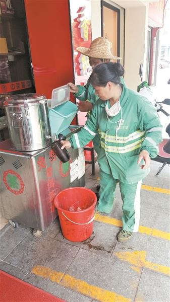 邱卫东为“城市美容师”供应茶水,以表敬意和感谢。