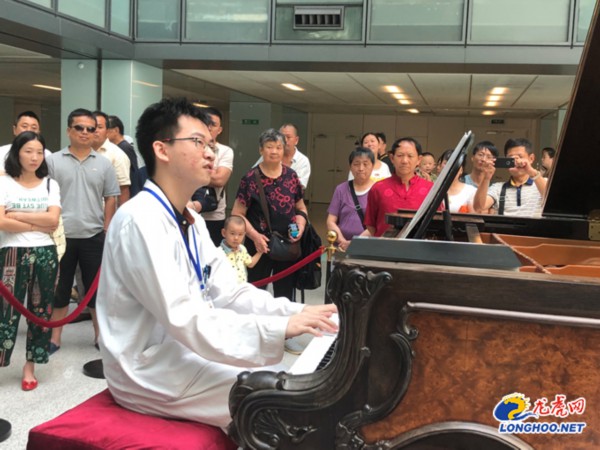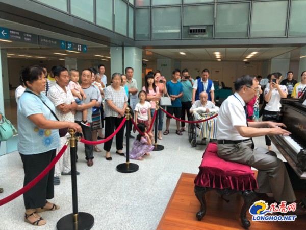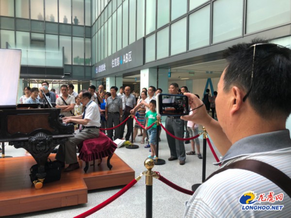 7月的南京骄阳似火。25日早上8:45,在南京鼓楼医院钢琴厅内,清新明快的琴声响起,一位老者端坐琴前,黑白键在其灵动的手指下上下跃动,时而铿锵有力激昂澎湃、时而婉转悠扬行云流水的旋律也让厅内的就诊人员、患者家属沉浸在音乐的海洋。而在这里,每一天都上演着不一样的钢琴盛宴。