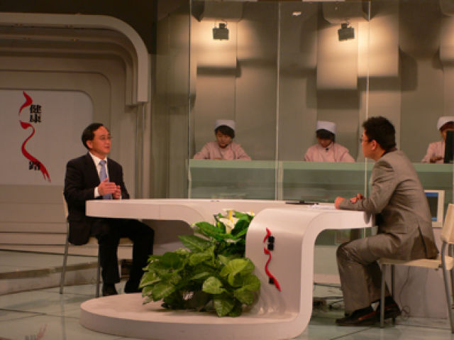 ▲李勇杰教授在《健康之路》栏目做科普宣传。