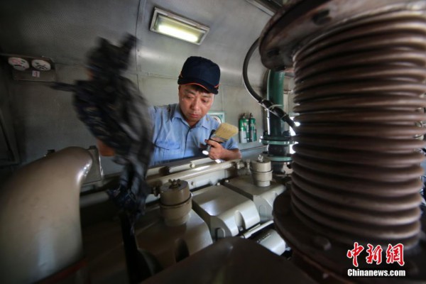 近日,重庆市发布“高温红色预警”信号,最高气温达到40℃以上。2018年暑运开始以来,有“火车医院”之称的中国铁路成都局集团有限公司重庆车辆段重庆北运用车间,500余名工作人员坚守岗位,每天检修、清洗370余节列车车厢,全力以赴确保旅客列车安全舒适。苏志刚 摄