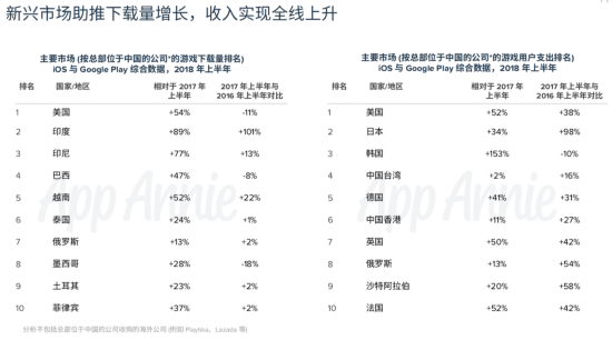 根据App Annie 数据,2018 年上半年中国iOS App Store 游戏用户支出较2017 年上半年仅增长了 2%,而广大的海外市场增速可观,出海对于中国移动游戏发行商而言已经是必然的选择。