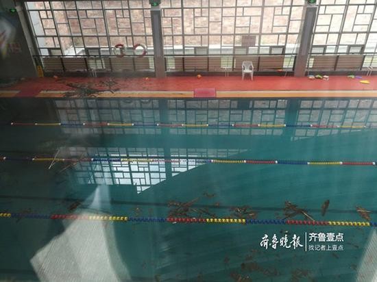 下午3点,记者来到事发的游泳馆门口。透过游泳馆玻璃可以看到,泳池里和岸边有不少建筑垃圾,而上方七八米高的屋顶处,有部分房顶缺损,疑似木质材料。不时有家长带着孩子来游泳,均被工作人员告知目前暂停营业。一辆警车停在游泳馆门口。