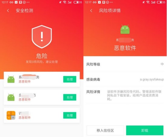 (图:腾讯手机管家全面查杀多款感染“寄生推”恶意SDK的手机应用)