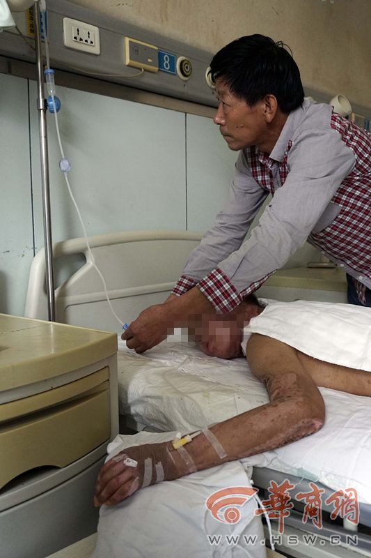 马莹莹住在西安市中心医院烧伤科,前几天才做过臀部和大腿的植皮手术,她只能趴在病床上。从6月12日事发至今,她已做过三次手术:7月3日,清创手术;7月10日,从整个背部取皮,植皮到胳膊、腹部、小腿;7月27日,从胯部取皮,植皮到臀部和大腿。