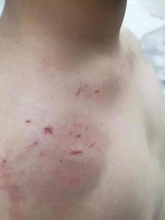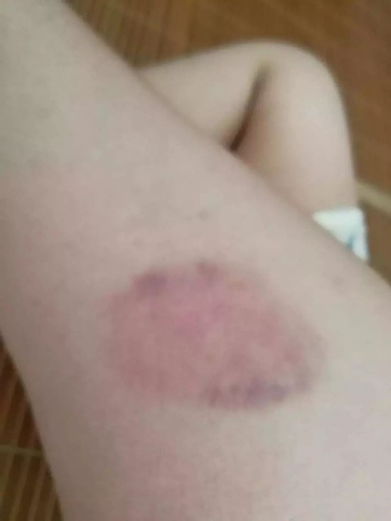 被打孩子浑身是伤,并且多处淤青。