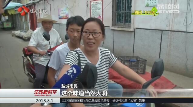 有盐城市民说:“天一热,越热味道越重。”还有盐城市民说:“门前这个,这个味道当然大啊,蚊子好多的。”