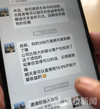 员工小赵称,很多员工也买了这些理财产品。他回忆,周六(7月28号)凌晨两点多,老板突然现身在群里发消息,说自己筹不到资金要去派出所自首了。几个小时之后,28号一早,投资者也都收到了这个消息。