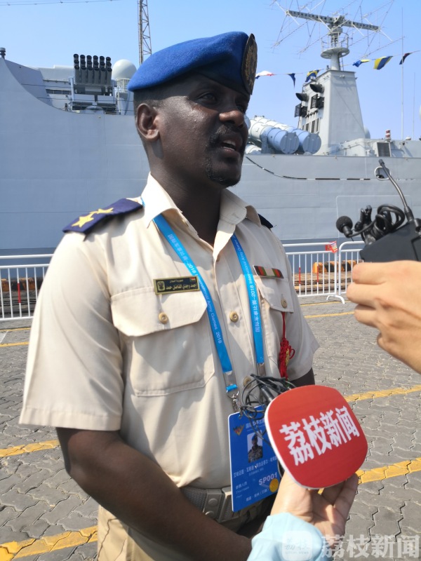 苏丹参赛队领队艾哈迈德中尉:这些军舰都非常的先进,我们国家有类似的军舰,但是比这个要落后,通过参观这次军舰,我们学习到了很多,尤其井冈山军舰,体积非常大,非常先进。