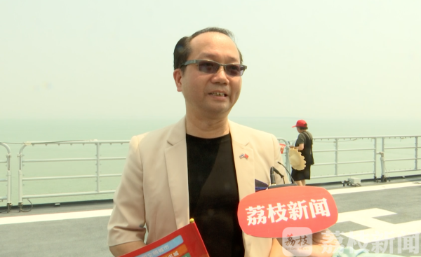 此次军舰开放日,吸引了全国各地的民众过来参观,甚至有从海外特意飞回来参观的华侨。这位泰国华侨表示:我们祖国很强大,我们华侨很欣慰,祖国强大了,是我们海外华人的强大后盾,感觉很骄傲。