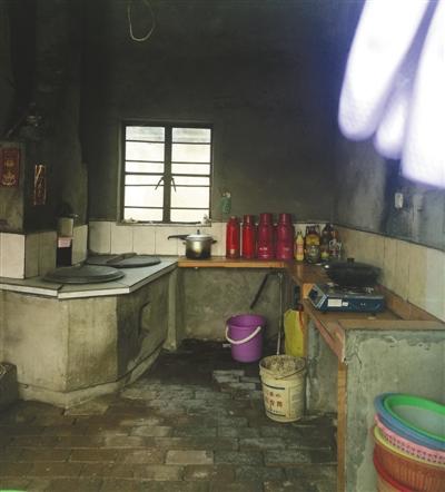 奶奶郭芳和孙女璇璇在江苏淮安住所的厨房。本版图片/新京报记者 王双兴 摄