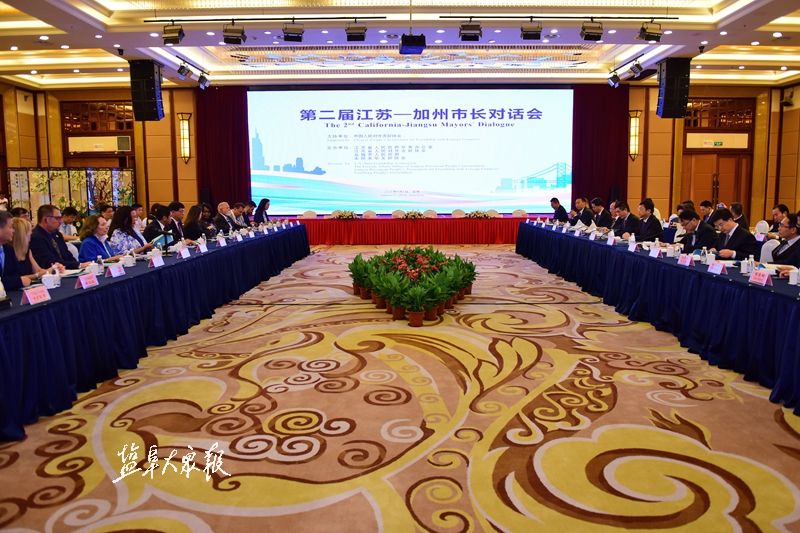 8月1日,第二届江苏—加州市长对话会在盐城市举行。江苏省人民对外友好协会会长柏苏宁,美国联邦众议员吉米·戈麦兹,市委副书记、代市长曹路宝分别致辞。美华友好协会会长冯振发,加州6个郡、市和江苏13个市、县(市、区)代表等参加活动。
