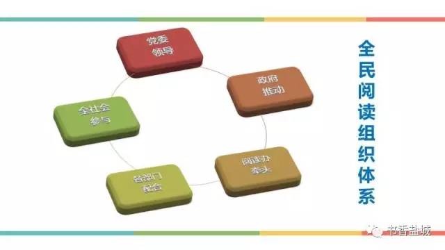2016年8月份,盐城市率先在全省实现各县(市、区)全民阅读促进会全覆盖,全市形成“党委领导、政府推动、部门承办、组织支撑、全民参与”的全民阅读组织体系和网络架构,基本形成以县级以上图书馆为主阵地,乡镇(社区)图书馆(分馆、室)为依托,村农家书屋、社区书屋为服务点,便民书吧、流动图书馆等为补充的阅读设施体系。
