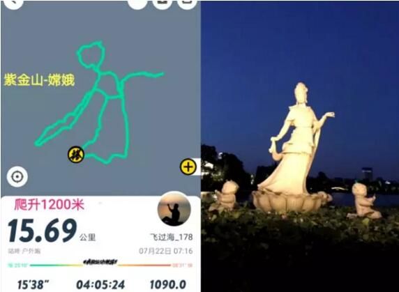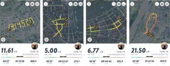 站立的"鸵鸟",行走的"山羊",奔跑的"玉兔"……这些栩栩如生的图案,全都是跑友"飞过海"用脚步跑出来的。
