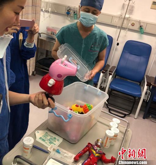 记者在医院看到,为提高病人的舒适度,麻醉科医护人员花了不少“小心思”,如在手术准备室中为小朋友准备玩具,放映动画片。7岁的刘思思(化名)在做耳鼻喉类手术前,专注地玩着医生递来的玩具,“害怕吗?”面对记者的提问,刘思思笑着摇了摇头。